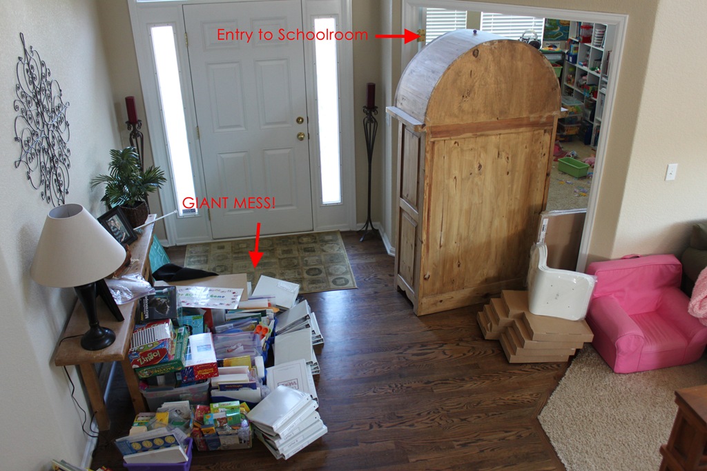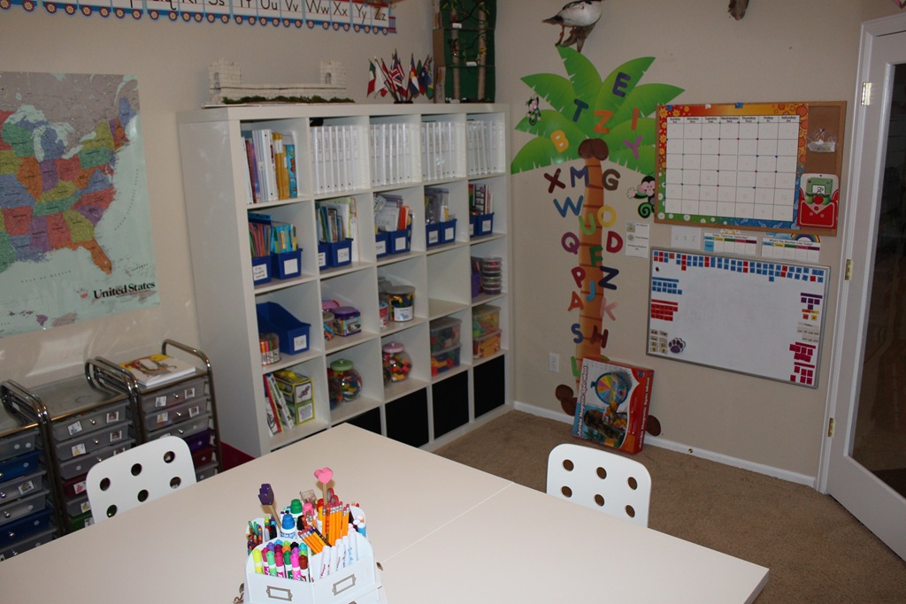 So that’s it, our schoolroom is all set up, curriculum is put away, and all’s ready to go. Too bad the kids aren’t allowed in here anymore or we could start school tomorrow ;o)