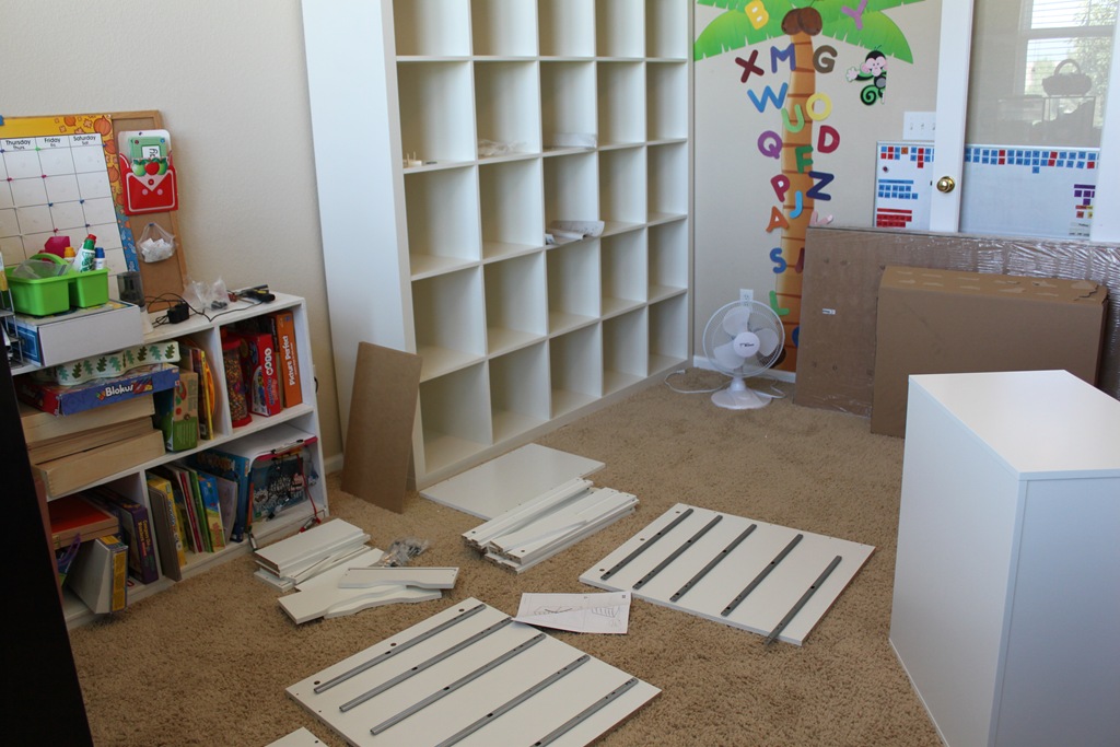 I started out by taking most of the things out of our school room to make new for the Ikea bliss.