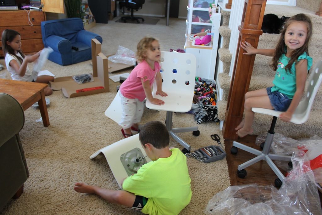 And assemble. Why I thought swivel chairs that raise and lower would be a good plan is beyond me. I got sucked in to all the goodness by Ikea.