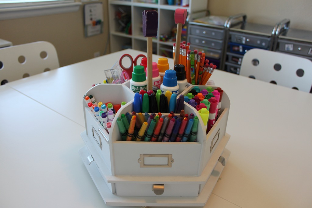 This cool Making Memories Caddy was one of my old scrapbooking items. I dumped out the supplies and filled it with markers. Yep, you know you’re a homeschooler when you start sacrificing your scrapbooking supplies in the name of school.