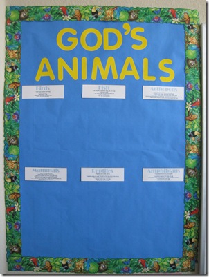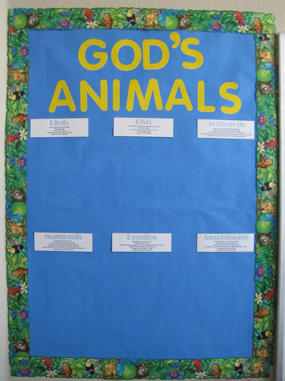 As you go through each state, you’ll discuss the state animal symbols, classify them based on their species then add them to your animal wall. We set up our wall the same as last year basically. (See below)