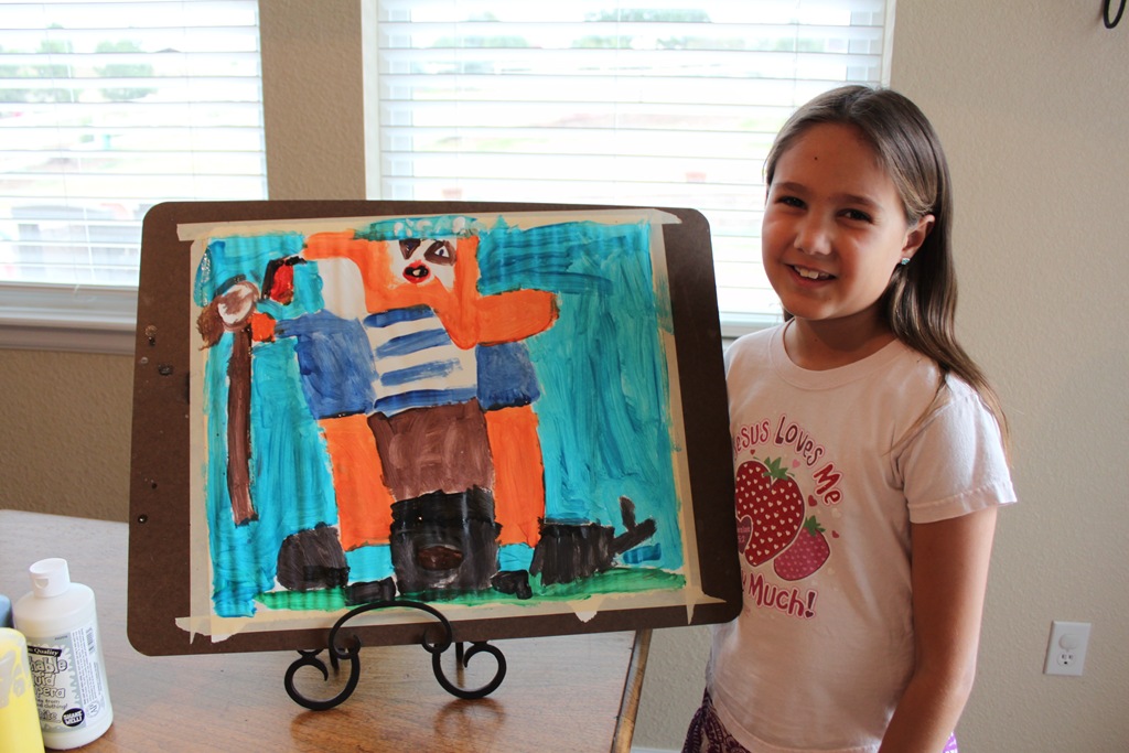 Here is what Tinkerbell came up with, she actually didn’t like the painting they chose, so this is her rendition of “Girl Before a Mirror”.