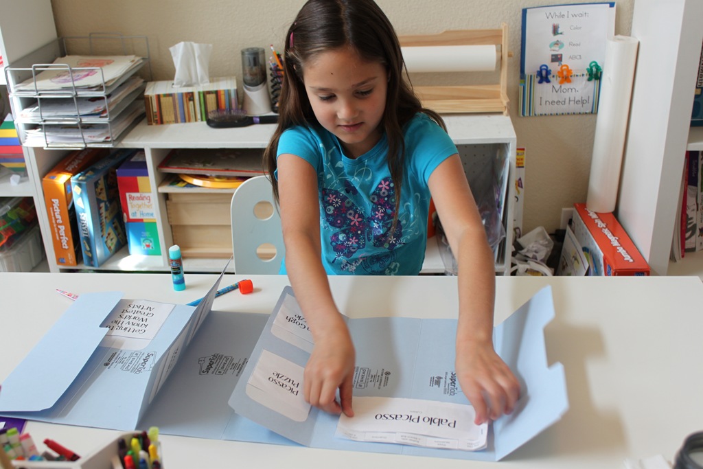 Next we filled in our Pablo Picasso mini-book and added it to our World’s Greatest Artists Lap Book. I thought it would be easier to make one Lap Book for the whole family this time, although the kids were asking to make their own, so I may have to change that.