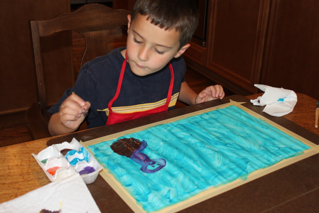 I set up the table with the painting displayed so they could see it for reference.
