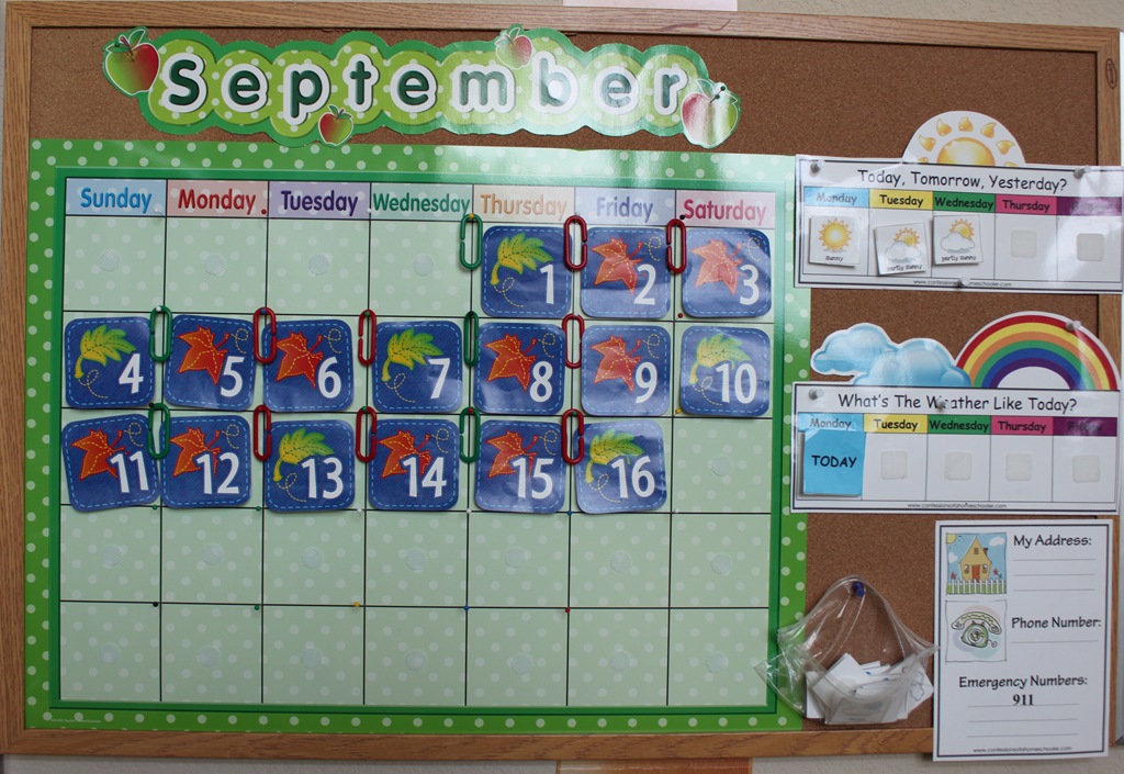 Seasons Chart: We don’t do this daily, but we do discuss the name of the season when we chart our weather and appropriate clothing. We talk about what kind of activities we do during each season as well.