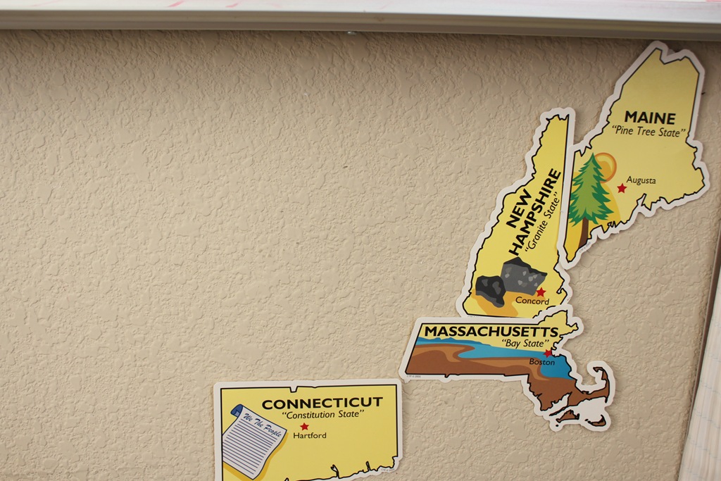 We started off this week with the Teeny Tot quizzing everyone on the states they’ve learned so far. Then she located Boston, MA on our Wall Map for all to see. Actually, she located Virginia, but we all clapped and told her she did good so she’d get down and let someone else have a turn.