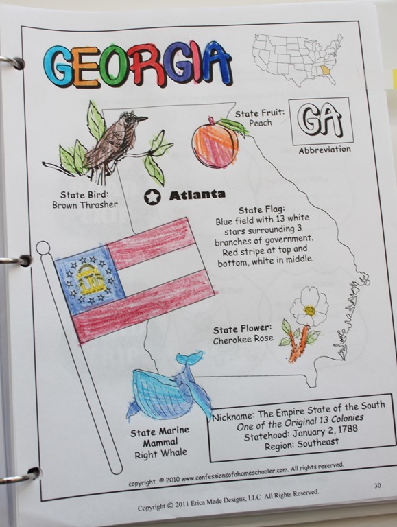 I printed the whole workbook at the beginning of the year, so all I have to do is say, okay today we’re doing “XX” state open to that page. Much easier that way!