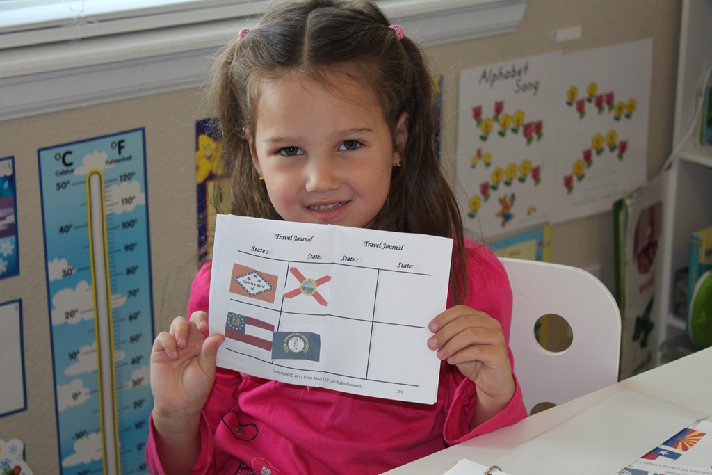 At the end of our trip we always add our state flag to our travel journal before moving on to the next state!