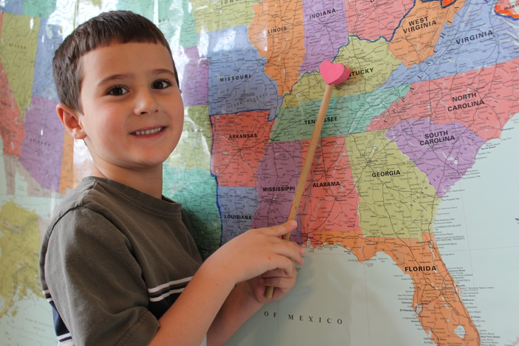 Each week we read through our National Geographic Atlas, then take turns finding the capital city as well as other fun things in the state using our excellent mapping skills that we’ve gained through our trip.