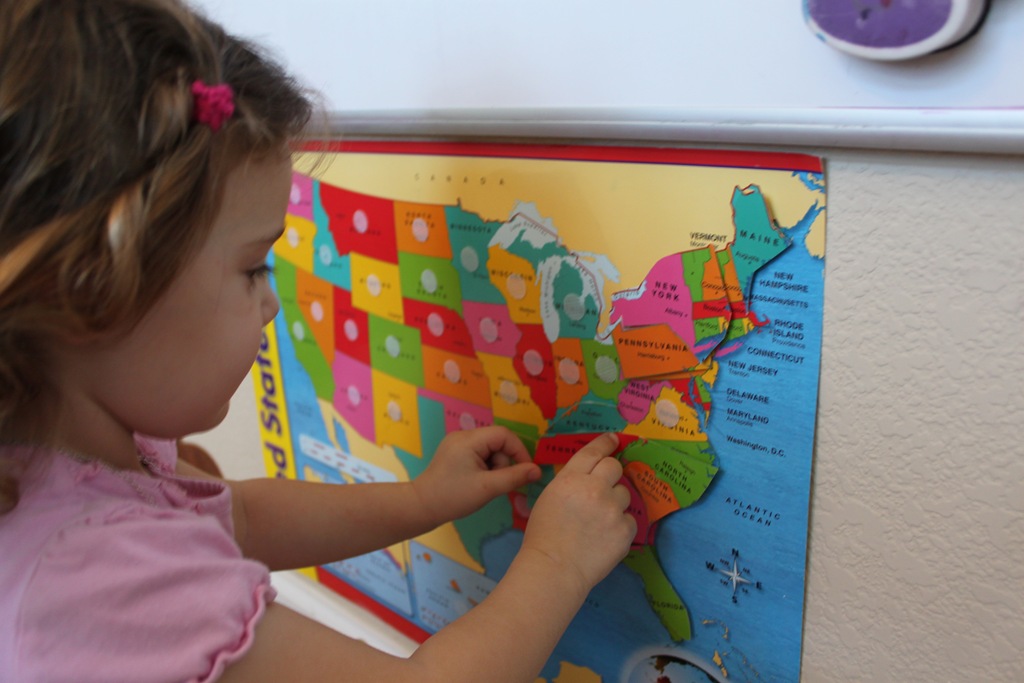 I did have a question: The trendy map poster you use (the one with the velcro dots). Did you purchase 2 and cut out the states on one?
