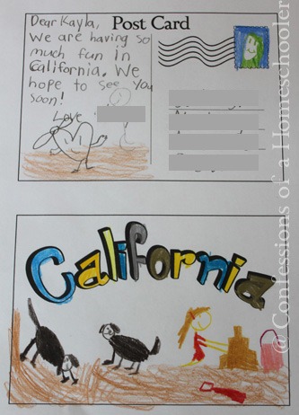 We made a California state postcard to send to an imaginary friend…