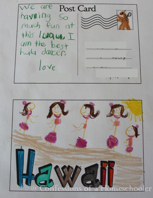 We made designed a postcard from Hawaii, and wrote a fictitious letter to a friend.