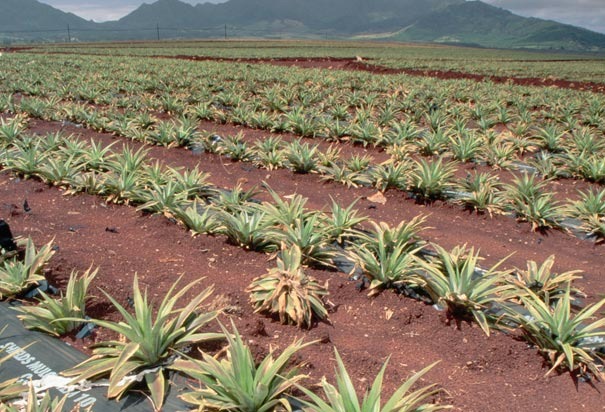 The Dole Pineapple Plantation is one of Hawaii’s main attractions. In 1922 James Dole purchased the island of Lanai and developed it as a vast pineapple plantation which became the world’s largest plantation with over 200,000 acres. Take a field trip to the grocery store and pick out a fresh pineapple. Fresh green leaves at the top signify a ripe pineapple, the body can be any color on the outside. It should smell fragrant but not too sweet. Avoid soft pineapples and ones that smell overly sweet, this may indicate that the pineapple has begun to ferment.