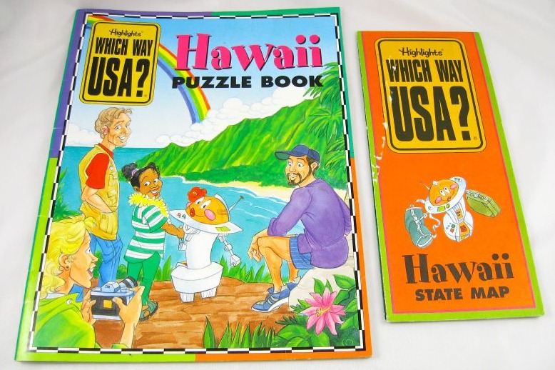 We read through all of the fun facts on Hawaii from our Which Way USA Highlights Subscription. If you can, this is a really fun United States subscription. The magazines have fun games, and the fold out you see below has pictures with lots of fun facts along with a full sized map of the state on the other side.