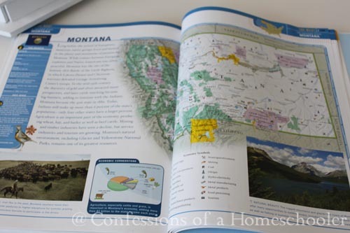We read through all of the fun facts on Montana from our Which Way USA Highlights Subscription. If you can, this is a really fun United States subscription. The magazines have fun games, and the fold out you see below has pictures with lots of fun facts along with a full sized map of the state on the other side.