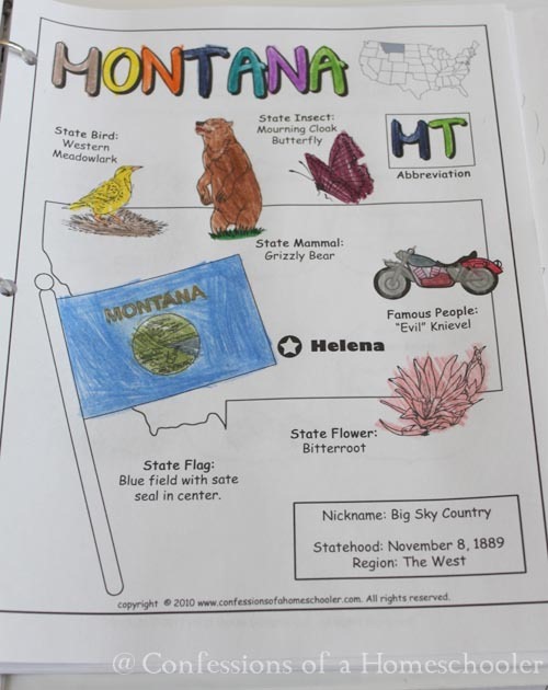 Everyone completed their state worksheets as we read through all of the Montana state facts in our curriculum:
