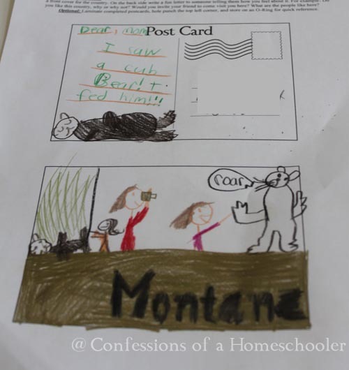 We made designed a postcard from Montana, and wrote a fictitious letter to a friend.